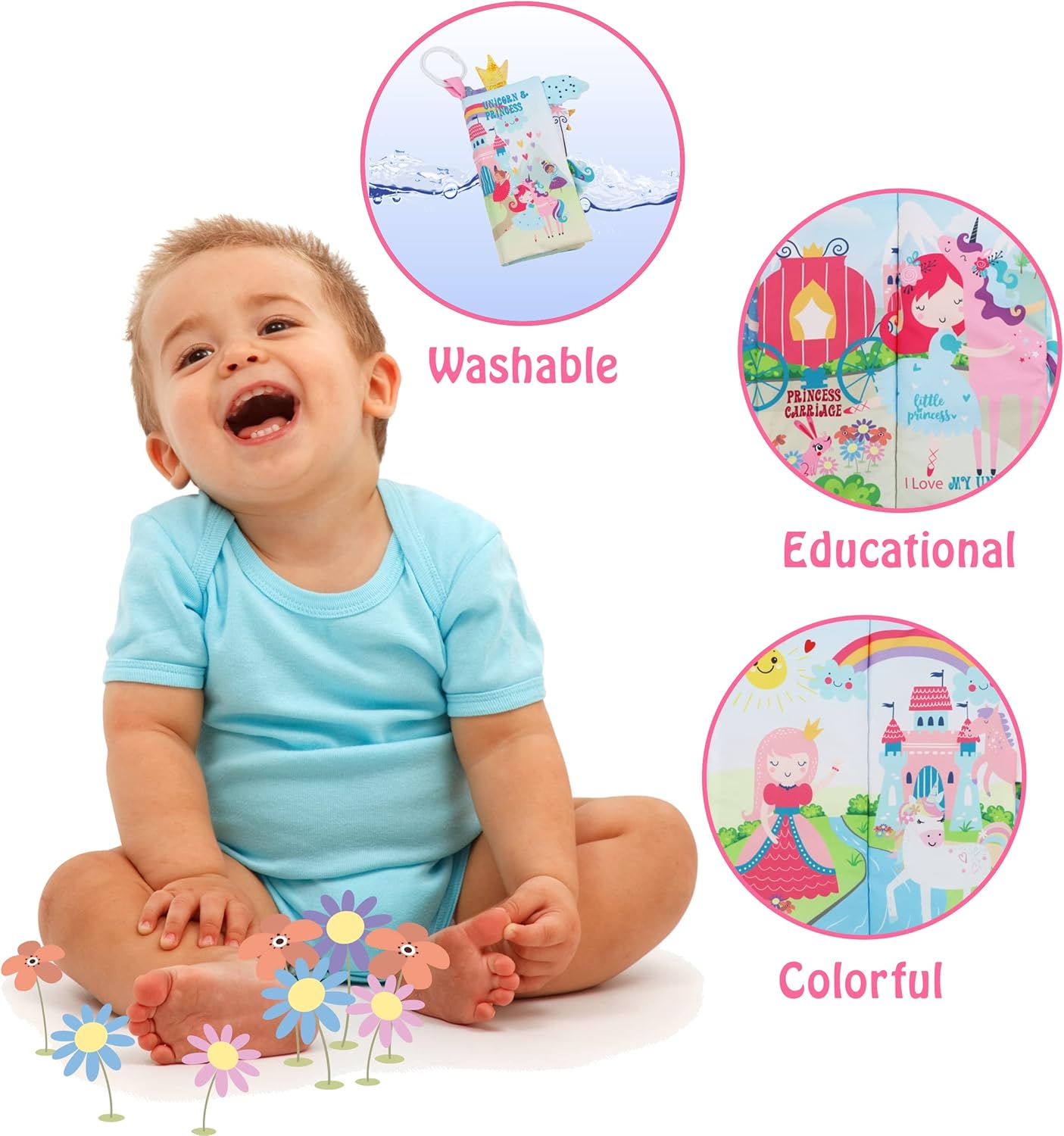 - Baby Books 0-6 Months, Interactive Activity Unicorn Book: Baby boys & girls will love these early learning toys. Be a child once again! Search for hidden surprises and cute animals tails in the Cloth Book,Touch and feel textures, enjoy crinkle pages! our handmade soft fabric book encourages adventure & discovery of the colorful Animals world.Your baby will be attracted by the 3D animal tails.you can watch her/his little eye’s dance! Bebe Soft cloth books help babies engage for endless hours of fun